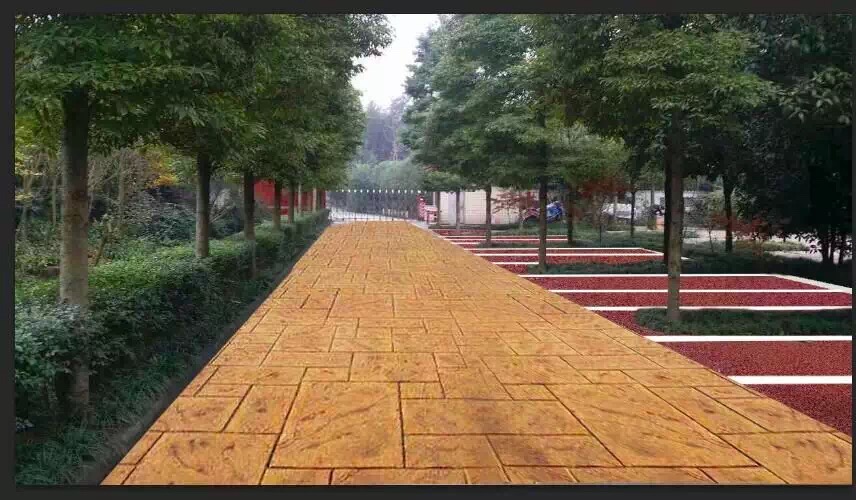 2、用硬化劑材料制作的彩色壓模地坪具有抗磨性、防滑、抗凍、不易起塵、易清潔、高強度、耐沖擊、且色彩和款式方面有廣泛的選擇性、靈活性、成本低和******環保等特點,是目前園林、市政、停車場、公園小道、商業街區和文化娛樂等設施領域的理想選擇。